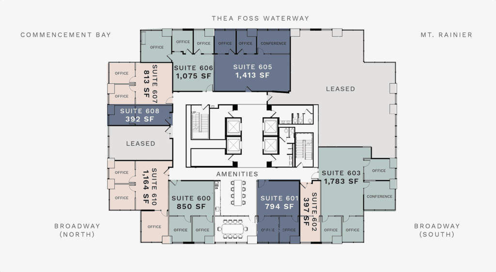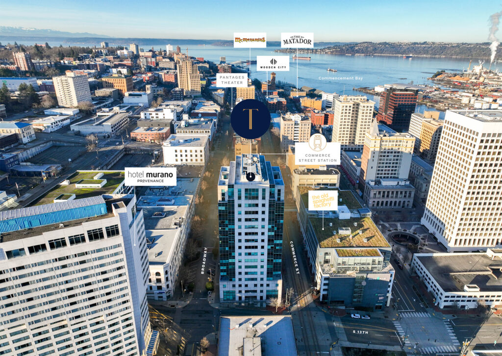 Located on the most vibrant street in Downtown Tacoma, Tacoma Centre corporate office suites provides you with access to renowned restaurants, bars, gyms, parking, and retailers within steps of the front door. Access to Tacoma Centre small office suites is unparalleled with immediate access to I 705, I-5, West Tacoma, and North Tacoma.